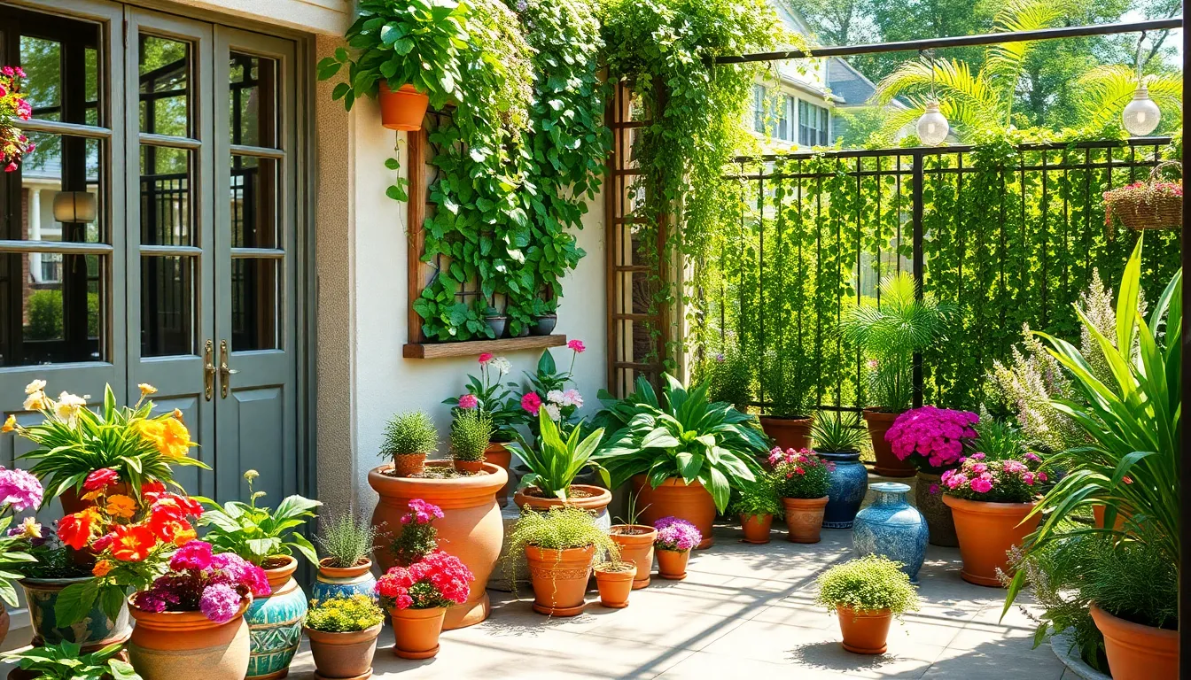 Vertical gardens maximize space and introduce lush greenery. These living walls can transform a plain patio into a private oasis. Use trellis systems or wall-mounted containers to showcase climbing plants and herbs. Ferns, ivy, or strawberries adapt well to vertical arrangements. Select plants based on sun exposure and desired aesthetics. Consider incorporating a drip irrigation system for efficient watering. This innovative approach not only saves space but also enhances air quality and encourages biodiversity, making any patio feel alive with nature.